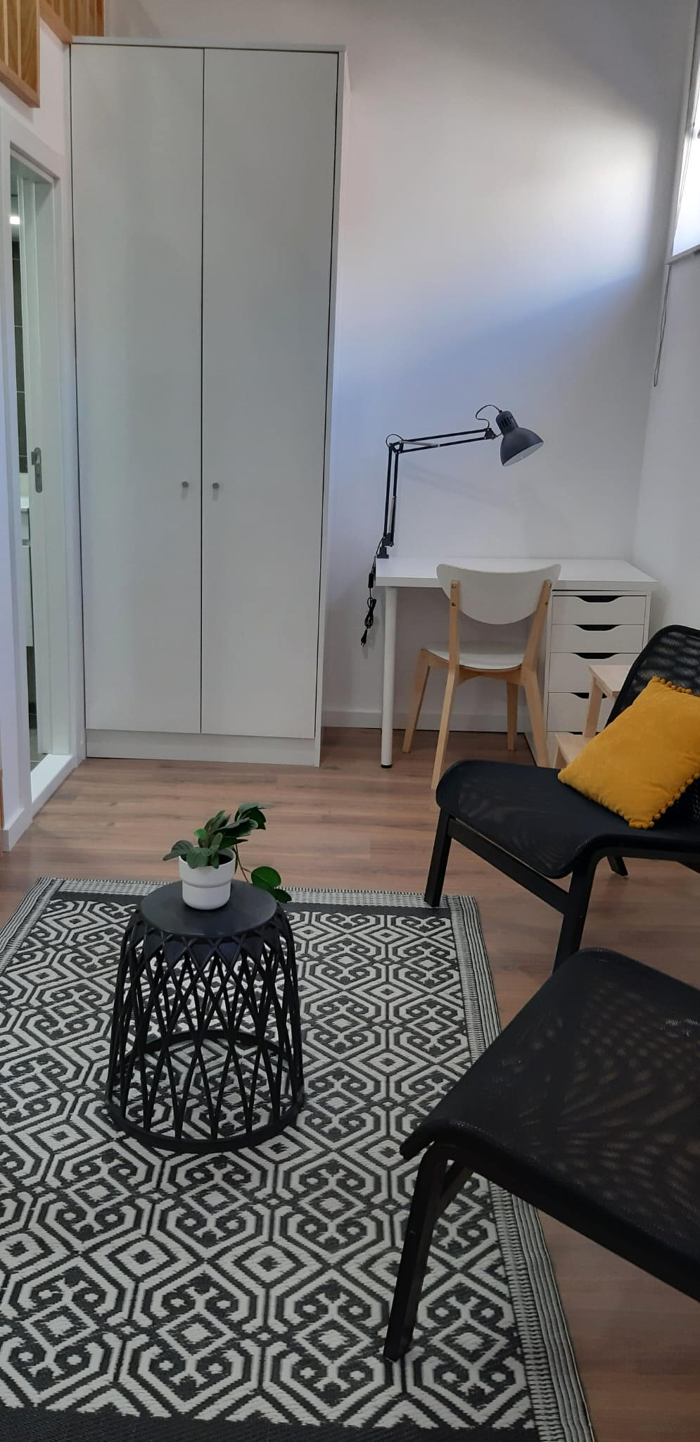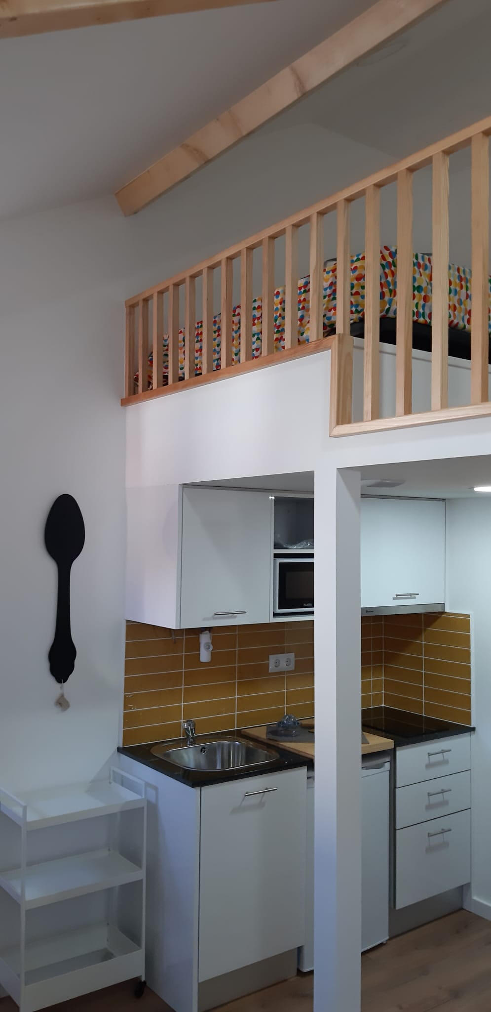 Estúdio com cama de casal em mezzanine. Dispõe de acesso pátio e a lavandaria partilhada!Studio with a double bed and mezzanine. Includes access to a shared patio and laundry room!